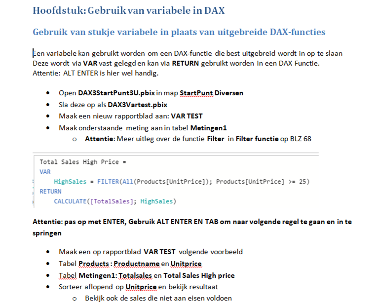 waar veel dieper op DAX , Variabelen, Parameters, Hulptabellen etc wordt ingegaan.