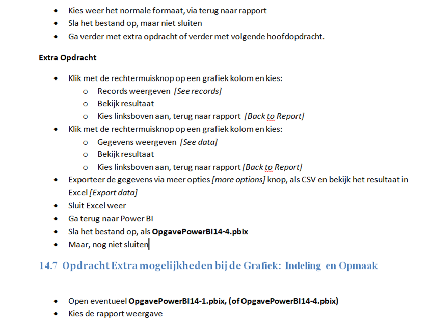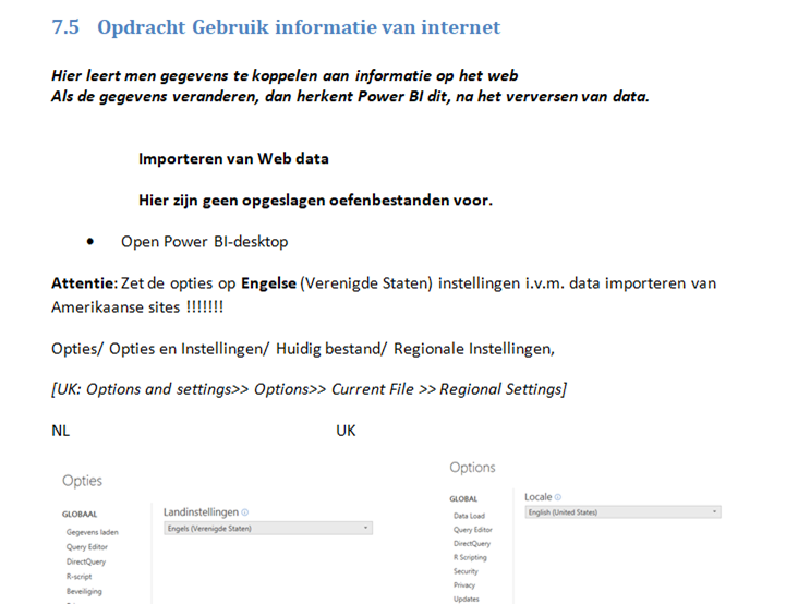 Omdat power BI in diverse talen gebruikt kan worden. Is het Nederlandse lesmateriaal voorzien van Nederlandse maar ook de Engelse menu’s.